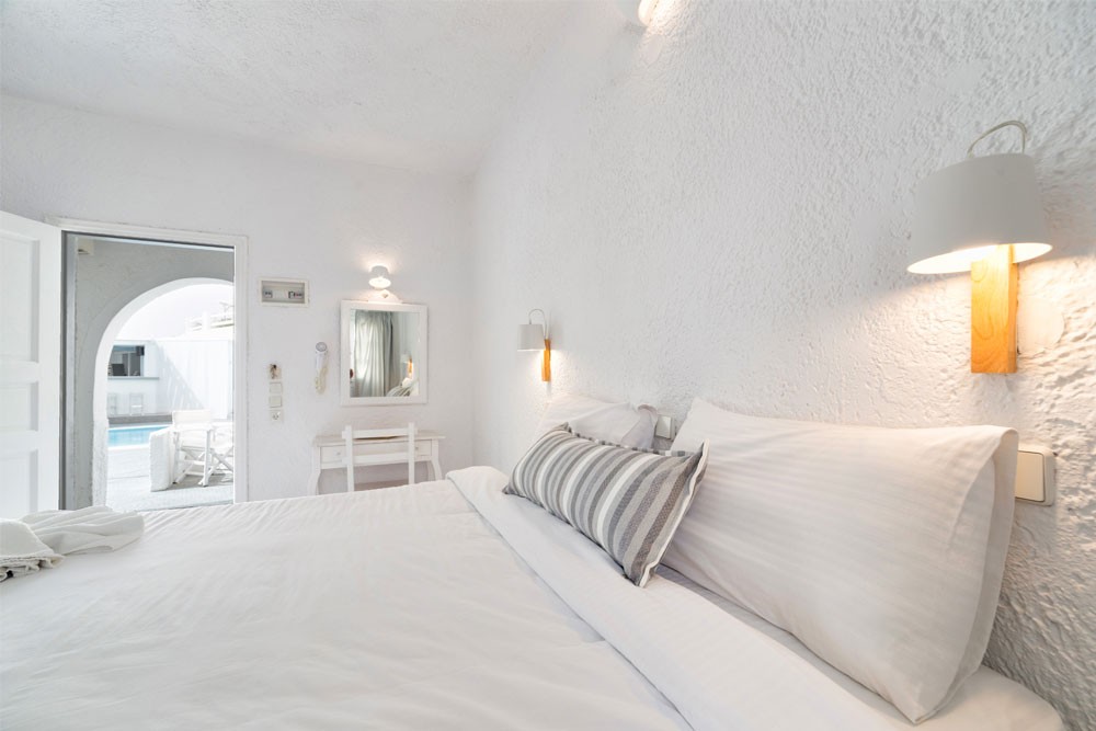 Τα Standard Δίκλινα δωμάτια αποτελούνται από ένα δωμάτιο με μεγάλο & άνετο κρεβάτι (queen), μπάνιο με ντουζιέρα και αυλή με θέα στη πισίνα, την καλντέρα και το ηφαίστειο. Τα δωμάτια είναι πλήρως εξοπλισμένα με air condition (ψύξης-θέρμανσης), χρηματοκιβώτιο, δορυφορική τηλεόραση, στεγνωτήρα μαλλιών, mini-bar, πετσέτες πισίνας, παντόφλες, είδη προσωπικής περιποίησης και δωρεάν ασύρματη πρόσβαση στο Internet.